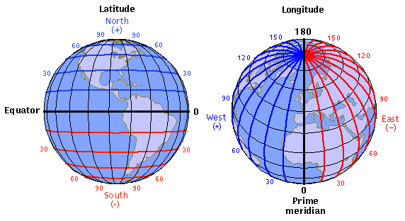 Les méridiens de longitude transitent par le nord/sud.