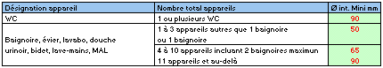 minimaux, exprimés en millimètres, des tuyaux de chute